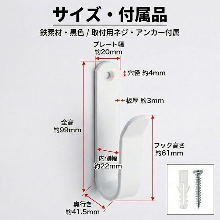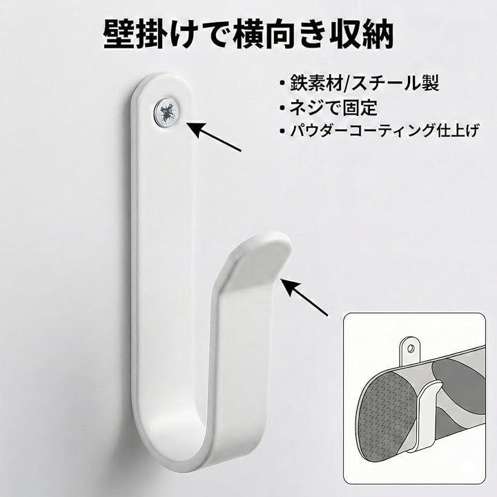 安定しやすいJフック形状: 先端が立ち上がった形で、ボードを掛けた際にズレ落ちにくい設計です。