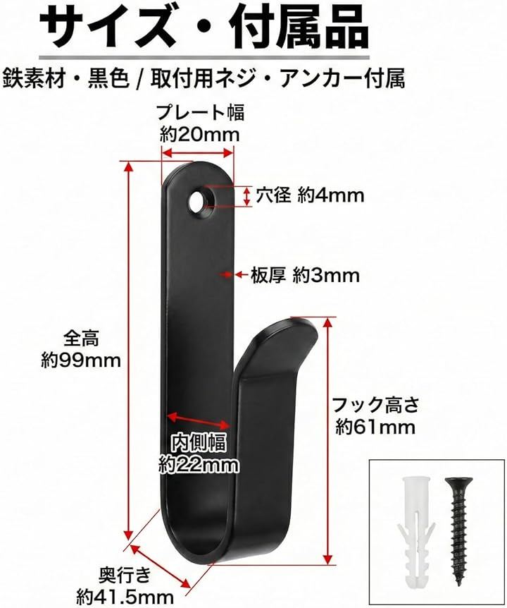 ネジ/アンカー付属: 付属品で壁に固定できます。