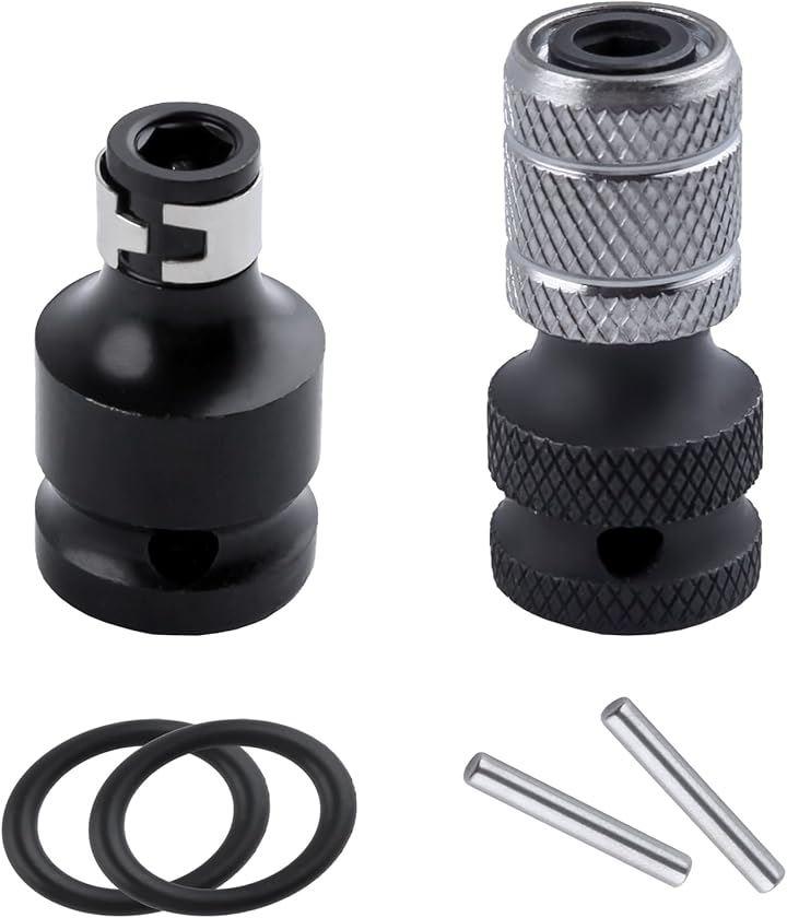 「用途」この2つの変換クランプは、片方の端に1/2 インチ角の電動スパナバヨネット、もう片方に1/4インチ六角穴があり、あらゆる種類のビット、位置決めビット、ソケット、4方向コネクティングロッド、ラチェット、トルクスパナ、インパクトスパナ、その他のドライビングツールに使用できます。