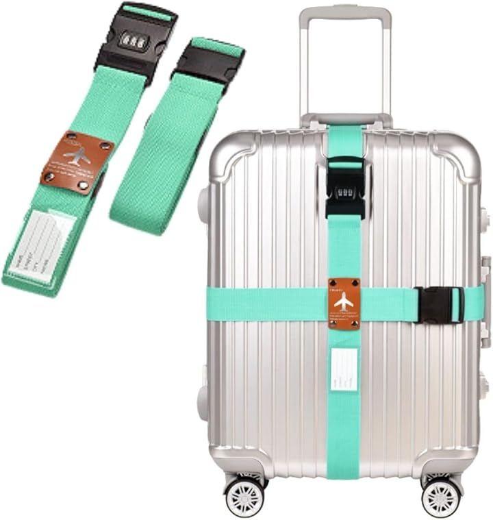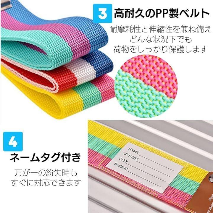 「スーツケースの安全、色で見つけやすく」高品質なレザーバックルと十字型の強固なダブルボタンで安全性を提供。