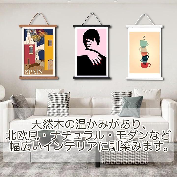 マグネット式で簡単取り付け – 上下のタペストリー棒に内蔵されたマグネットで、工具不要でポスターやアートをしっかり固定。