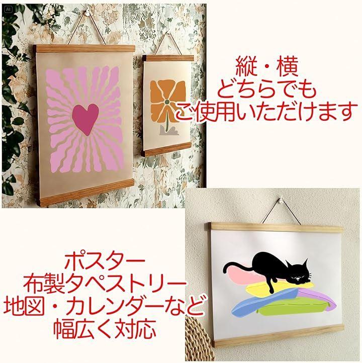 多用途で使える壁掛け木製バー – 額縁代用として、ポスター・手拭い・のれんなどをスマートに飾ることが可能。