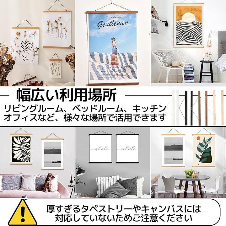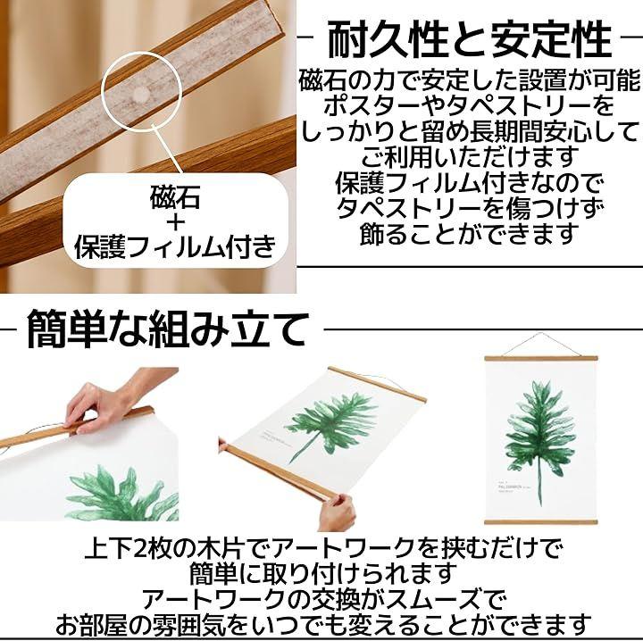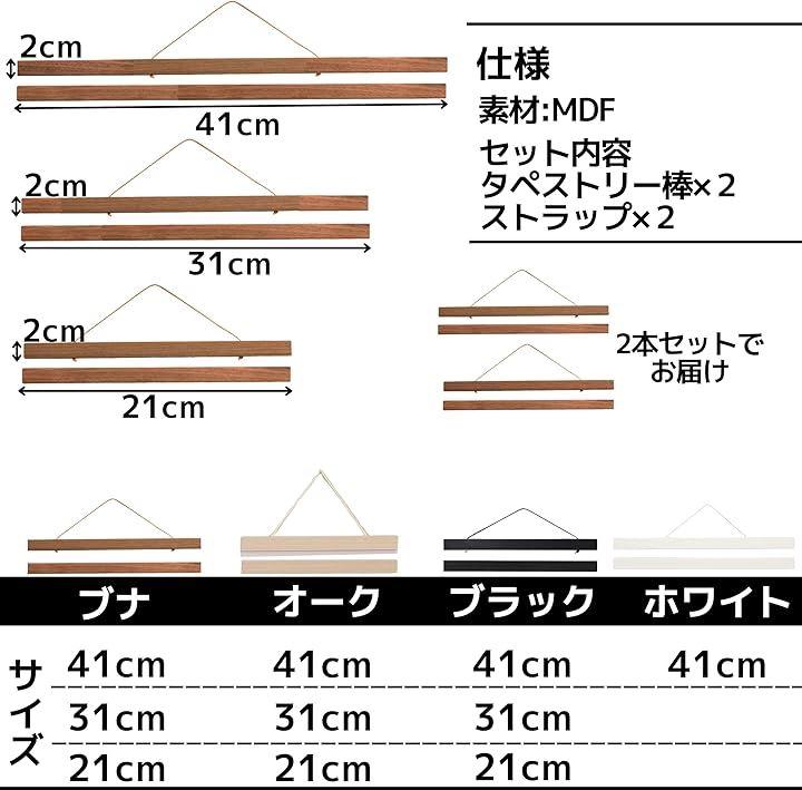 「仕様」ポスターハンガーのサイズ:41x2cm、素材:MDF、セット内容:タペストリー棒 2点セット(計4本)、ストラップ2本