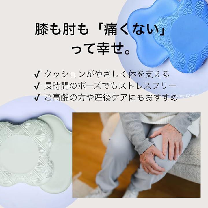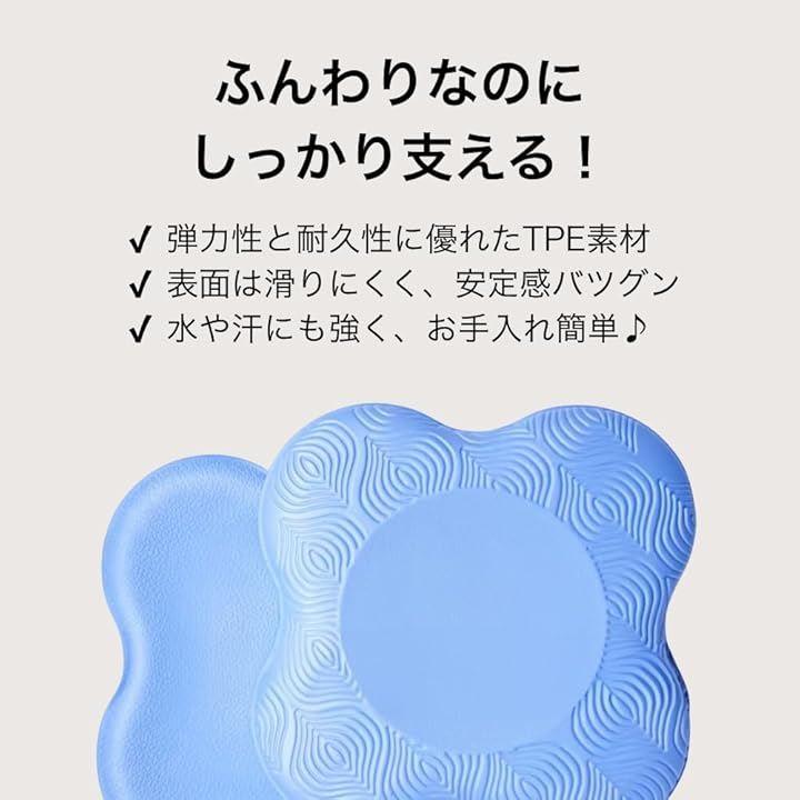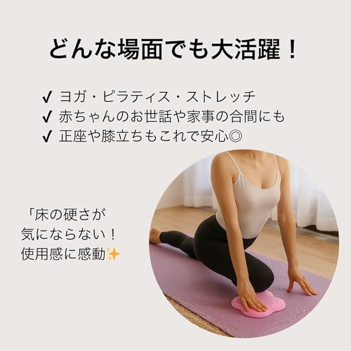 「膝や肘を守るクッションマット」 ヨガや筋トレ、ストレッチなどで膝や肘が床につく動作時の衝撃を吸収し、身体への負担を軽減します。