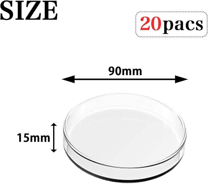 「商品内容」蓋付きシャーレ:20個入 サイズ:直径90mm、高さ15mm 重量:12.5g / 個 カラー:クリア 素材:プラスチック
