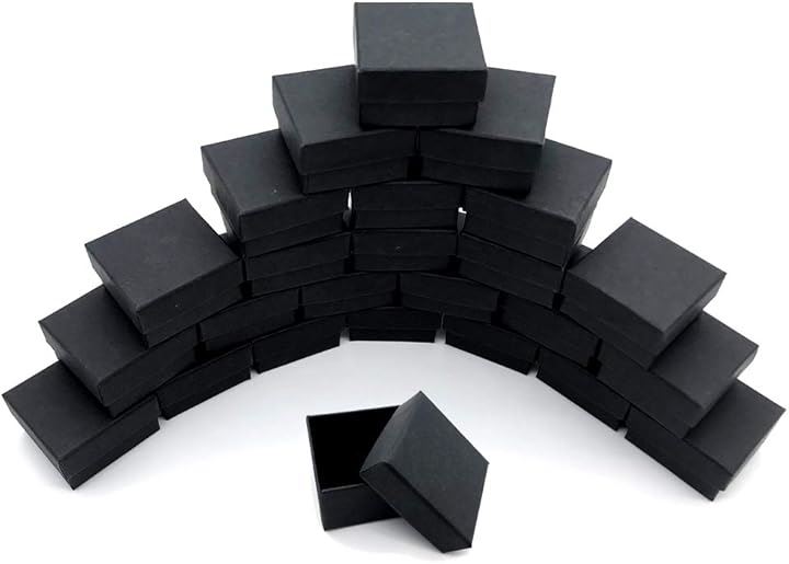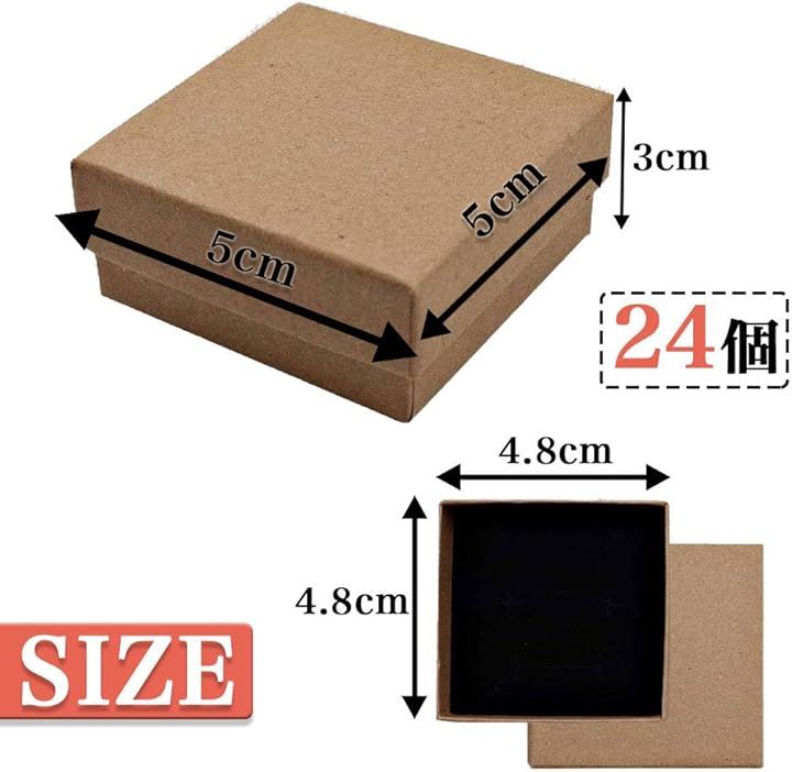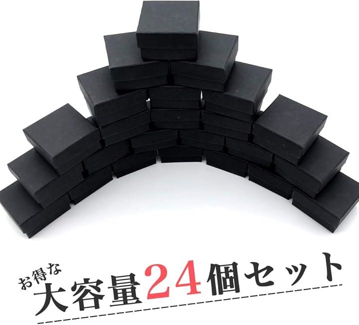 「商品内容」ギフトボックス(24個セット) <サイズ>5x5x3cm <素材>クラフト紙 <備考>黒スポンジ付き(ジュエリー用の切り込み有) <カラー>ブラック