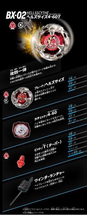 【BX-02】ワインダーランチャー同梱のスターター。攻撃と防御のバランスが取れたパーツを組み合わせ、 さまざまな相手への対応力を高めているベイ 【BX-09】シュートパワーを計測・記録できるツール。専用アプリと連携することでシュートパワーに応じたベイポイントをアプリ内で獲得。 ベイポイントを貯めるとレアベイが当たるゲームに挑戦できる。 【BX-11】ランチャー(別売り)に装着するツール。握りやすい形状で、シュートの安定性を向上させる。