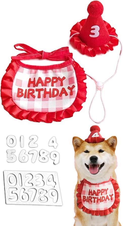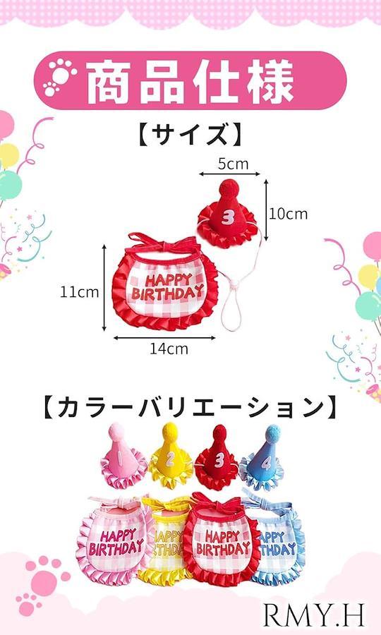 「製品概要」帽子x1、よだれかけx1、数字x1 ペットの特別な日を祝う為に快適で高品質な素材を使用しています。
