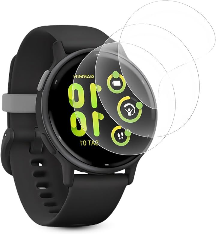 Set of 3 GARMIN vivoactive 5 dedicated screen protectors. Made of TPU material, offering excellent protection, scratch resistance, shock resistance, easy application, fingerprint resistance, and 24-hour automatic repair technology (vivoactive).