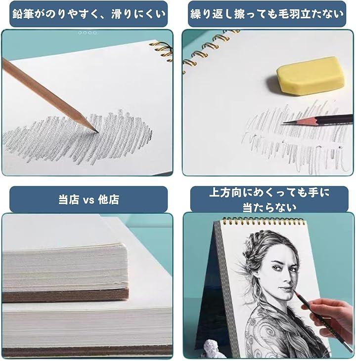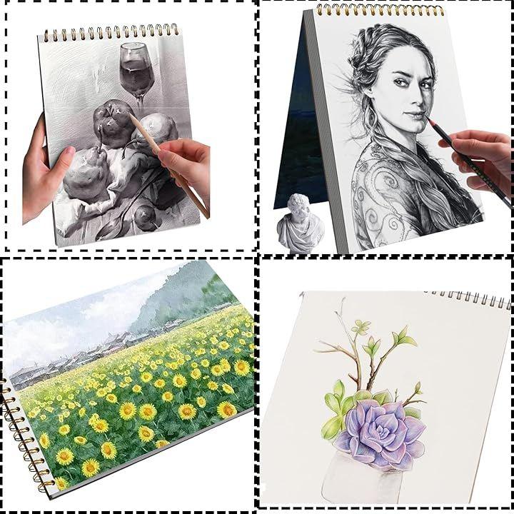 「スケッチや水彩画やお絵描きにも最適」スケッチブックの白い画用紙は、どんな色彩でも鮮やかに映えるため、アイデアを自由に表現できます。