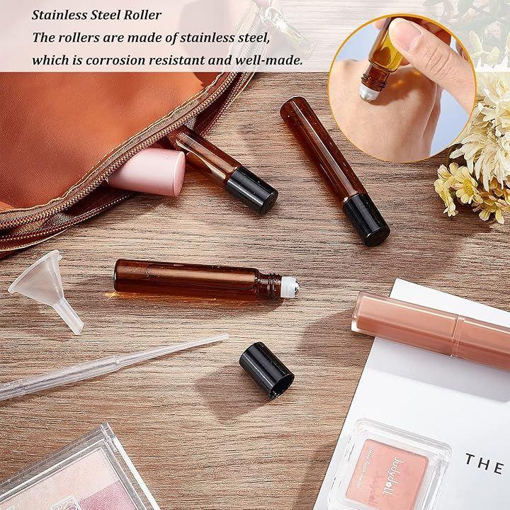 パッケージ内容:30本ロールオンアロマボトル;5本3mlプラスチックスポイト サイズ:高さ:約9.1cm;底面直径:1.5cm;容量:10ml 素材:ガラス エッセンシャルオイル、香水、リップ、およびその他の液体など収納できます。