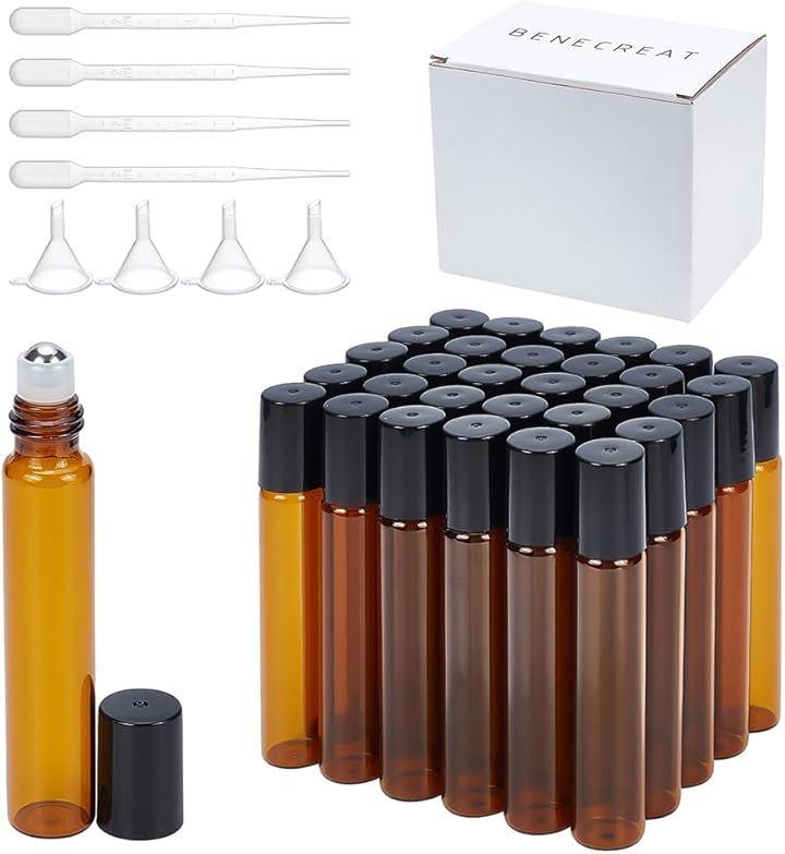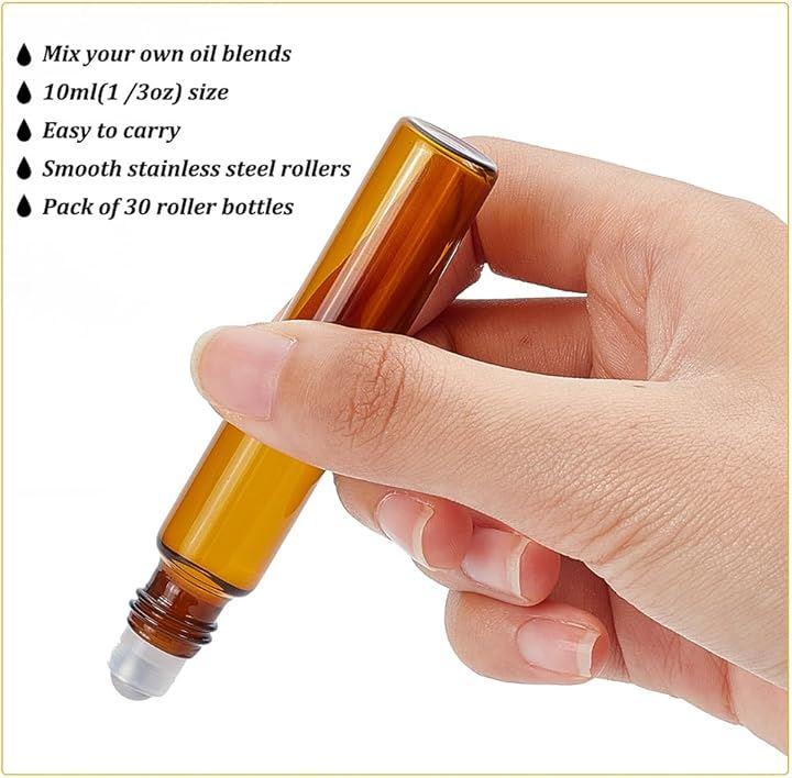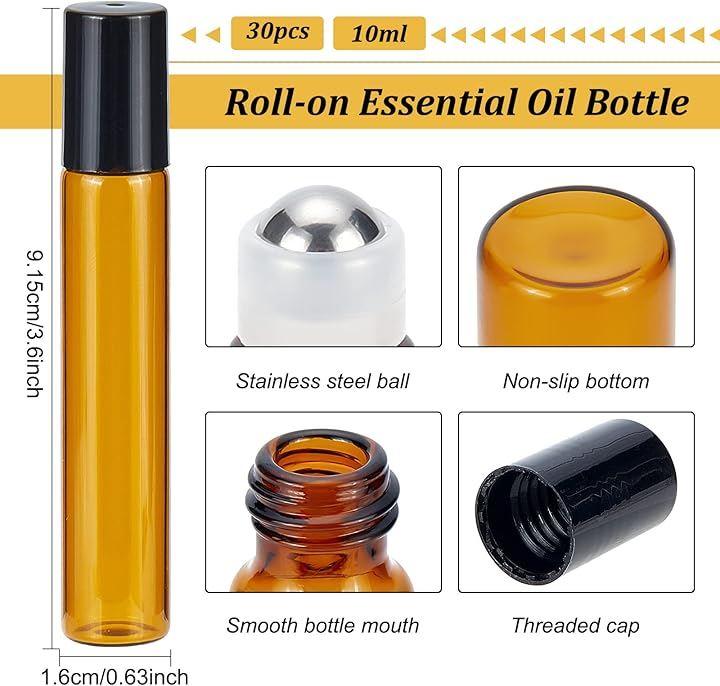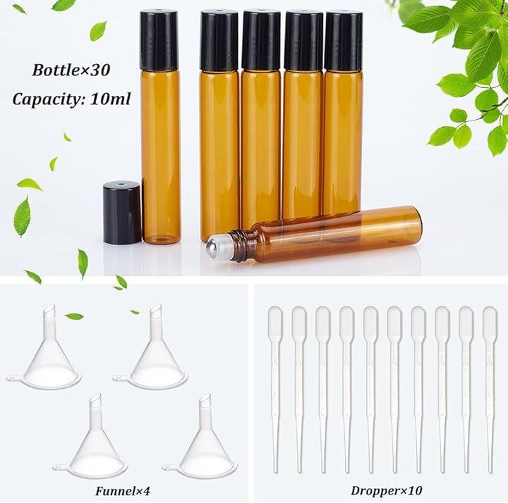 量:30本ロールオンアロマボトル;10本3mlプラスチックスポイト;4個漏斗、1個プラスチック栓抜き