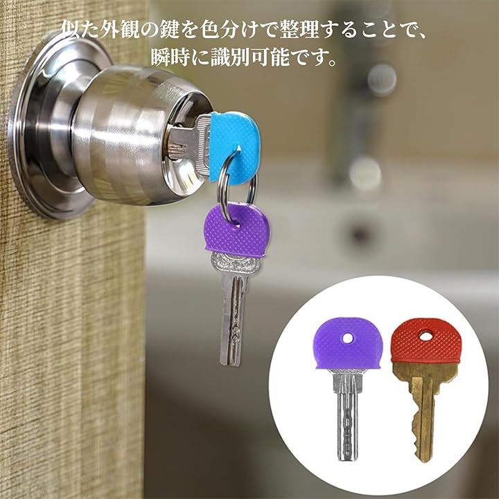 3.色分けで簡単整理:キーカバーは8色で、鍵を色分けすることで、どの鍵がどのドアに対応しているかを一目で確認できます。
