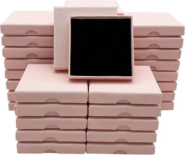 「商品内容」ギフトボックス 薄型タイプ:36個セット カラー:ピンク サイズ:8x8cm(正方形) 厚み:1.5cm 素材:クラフト紙 備考:黒スポンジ付き(ジュエリー用の切り込み有)