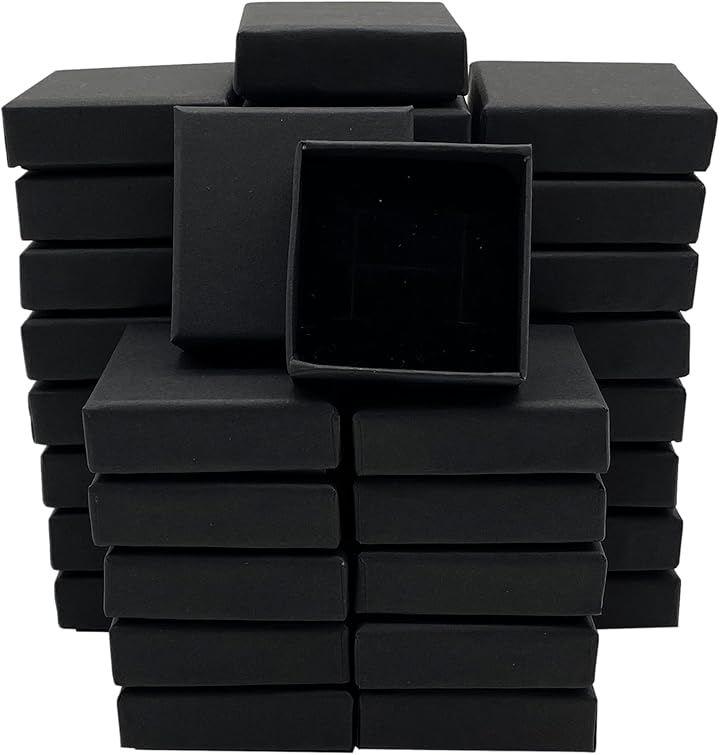 「商品内容」ギフトボックス 薄型タイプ:36個セット カラー:ブラック サイズ:5x5cm(正方形) 厚み:1.5cm 素材:クラフト紙 備考:黒スポンジ付き(ジュエリー用の切り込み有) *工場生産時期により若干、箱の形状が異なる場合がございます。