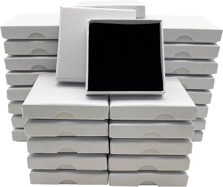 「商品内容」ギフトボックス 薄型タイプ:36個セット カラー:ホワイト サイズ:7x7cm(正方形) 厚み:1.5cm 素材:クラフト紙 備考:黒スポンジ付き(ジュエリー用の切り込み有) *工場生産時期により若干、箱の形状が異なる場合がございます。