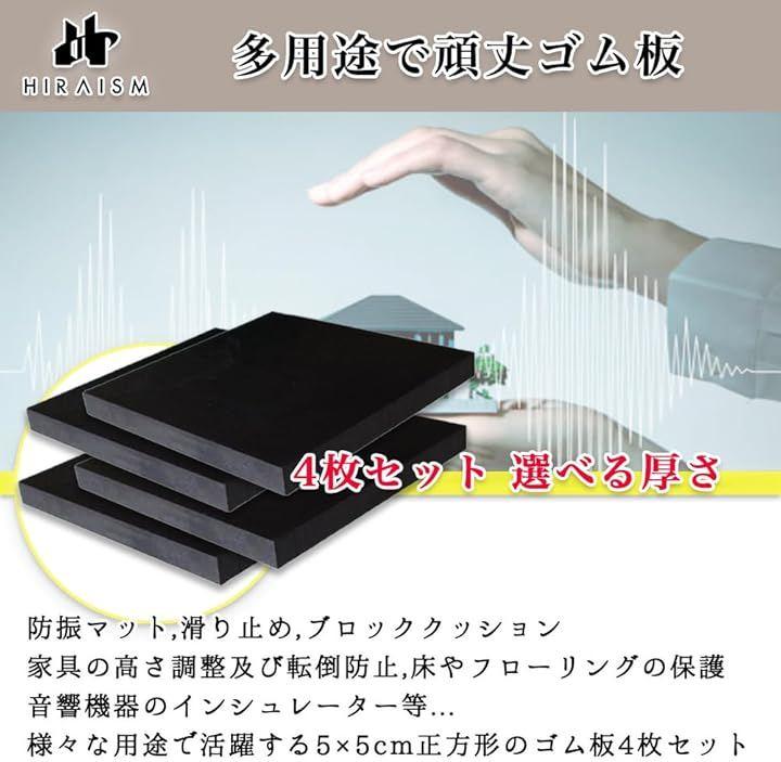 「多用途で頑丈なゴム板4個セット」防振マット、滑り止め、ブロッククッション、家具の高さ調整及び転倒防止、床やフローリングの保護、音響機器のインシュレーター等、様々な用途で活躍するHIRAISMのゴム板4枚セットです。