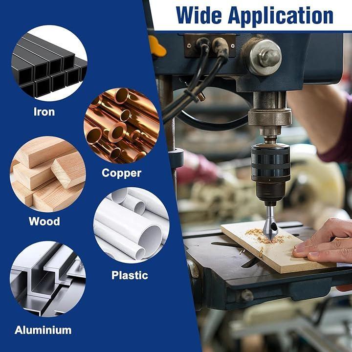 「効率的な切りくず排出」この穴あきドリルは、切りくずを素早く排出するように設計されており、目詰まりを最小限に抑え、切断作業をより速く、より清潔に、より静かに行うことができるため、全体的な作業効率が向上します。
