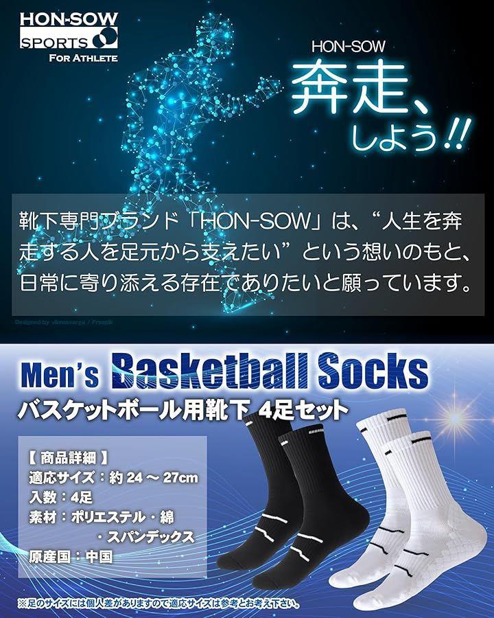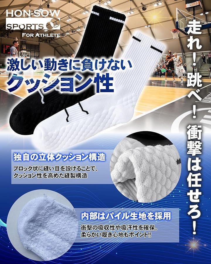バスケットボールのコート上で縦横無尽に動き回るプレイヤーの足元をサポートする専用ソックス。