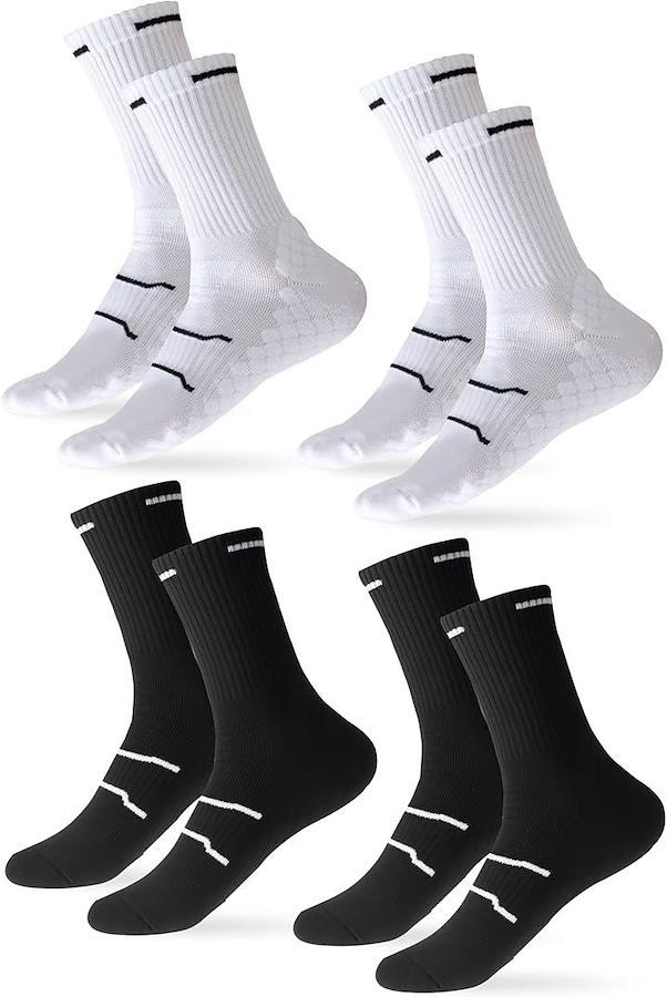 Set of 4 Mid-Cut Basketball Socks, Antibacterial, Odor-Resistant, Moisture-Wicking, Quick-Drying, Cushioned, Sports Socks