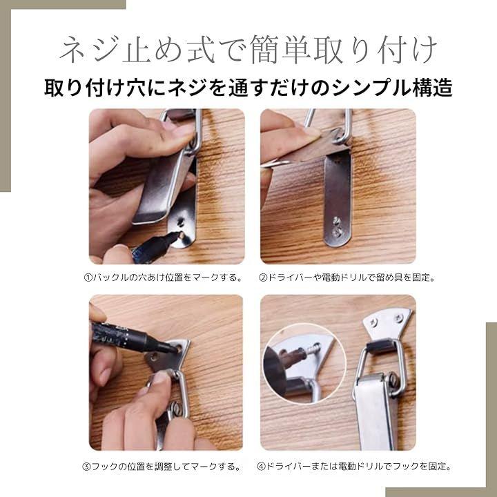 「強力ロックで固定」 しっかりとテンションをかけて固定する構造により、フタや扉がズレにくくガタつきも防止できます。