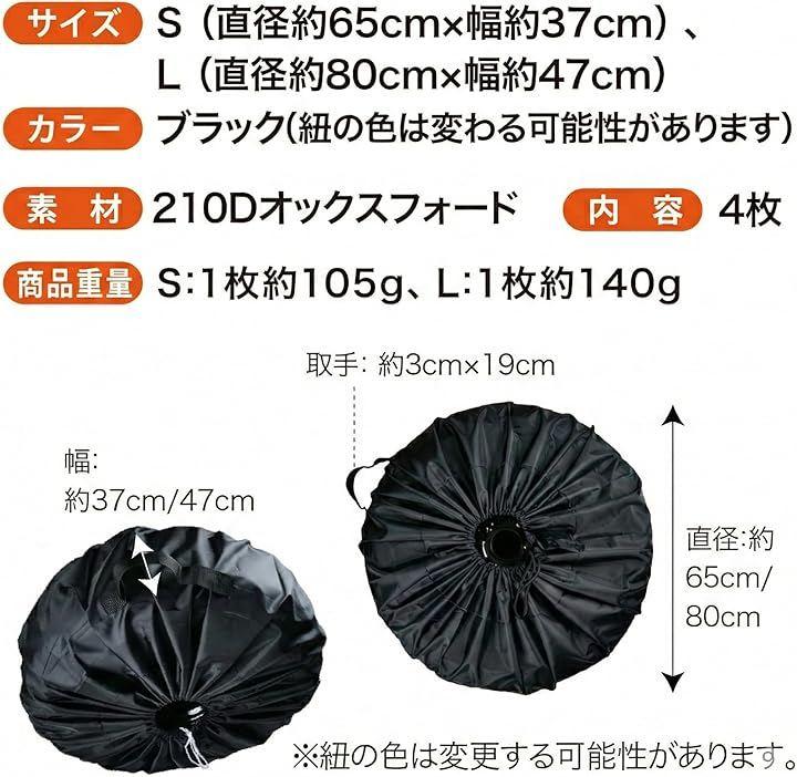 「サイズ」 直径約80cmx幅約47cm 「カラー」 ブラック(紐の色は変わる可能性があります)「素材」 210Dオックスフォード 「商品重量」 1枚約140g 「内容」 4枚