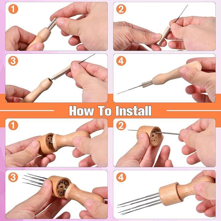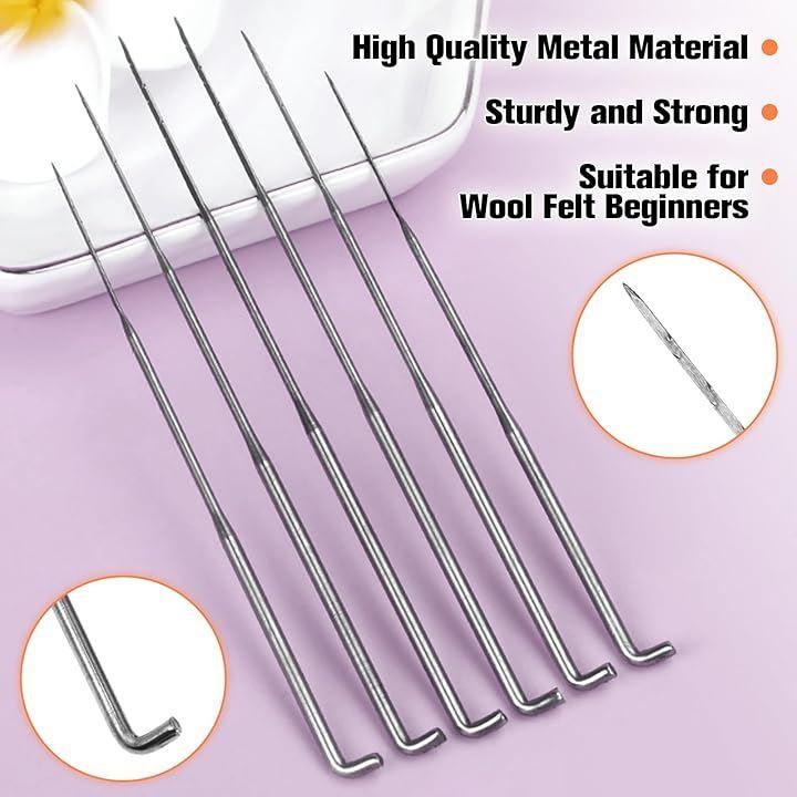 「突き針」高品質の金属製で、丈夫で耐久性があり、粗い針は針刺しの作業のごく初期に、中くらいの針は作業の途中の形を固定する段階に、そして細い針は最後の仕上げに適しています。