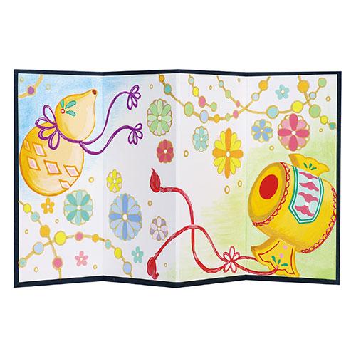 落ち着きのある白の屏風!硬質の1.5mm厚ボード使用! 本格的な屏風仕上げ!nアクリルガッシュやポスターカラー、墨、ペンなどの色々な画材で描くことができる!