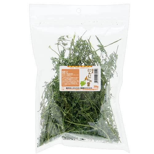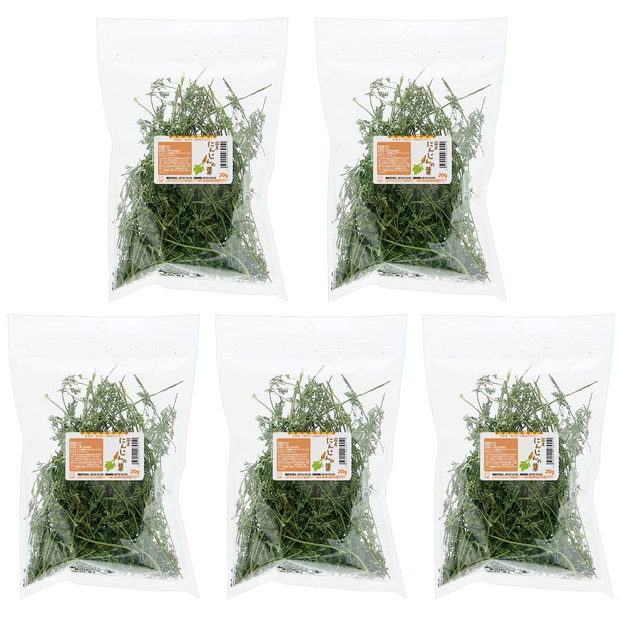 無添加無着色の小動物用おやつが5袋セットになった!国産にんじんの葉20g×5袋機能おやつ特長●契約農家さんで作られた香りが強く味の濃いにんじんの葉です。●取れたてにんじんの葉をその日のうちに低温でじっくり自家乾燥させました。●着色料や保存料、添加物は使用しておりません。素材そのままなので安心です。●保存に便利なチャック付きパッケージです。●窒素ガス充填パックなので新鮮なままお届けします。(窒素ガスを充填しているため袋が膨らんでいます。)●5袋セットです。内容量20g×5袋原材料にんじんの葉(国産)原産国日本保存方法●直射日光や高温多湿を避け、冷暗所に保管してください。●保存料不使用のため、開封後は密封できるビン等に移し替え冷蔵庫で保管することをお勧めいたします。●開封後は賞味期限に関わらず、お早めにご使用ください。ご注意※本品は小動物用フード(おやつ)です。※与えすぎにご注意ください。※本品は天然素材のため葉の破れや色にムラがある場合がございますが、品質には問題ございません。※繊細な葉の為、少々崩れてしまうことがございますが、崩れた部分はペレットにふりかけるなどしてご使用ください。※本品には、葉の茎も含まれます。