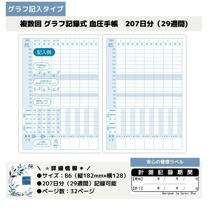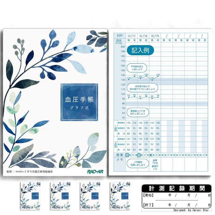血圧手帳 グラフ式 5冊セットです。 1冊につき、207日分(29週間)記録可能。 記録スペースやメモ欄など、必要な機能がしっかりと組み込まれています。 真贋確認実施の【商標登録済み】のブランドを使用しています