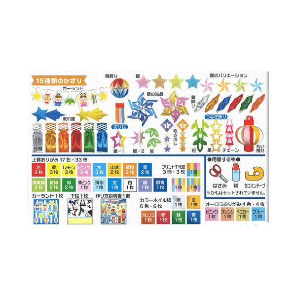 ●坪量:52.3g/平方メートル●四六判換算[kg]:45●セット内容:上質おりがみ150×150mm 33枚、カラーホイル150×150mm 6枚、オーロラおりがみ150×150mm 4枚、プリントちよがみ150×150mm 3枚、ガーランド1枚、下絵1枚、作り方説明書
