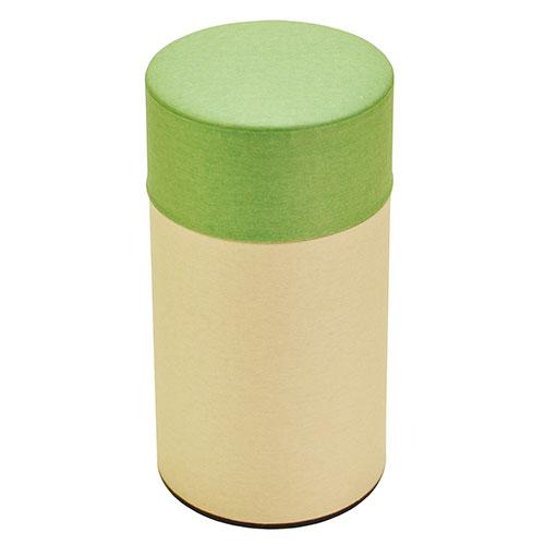 蓋の部分にシンプルなパステルカラーを配した温かみを感じる紙貼りのブリキポットです。
