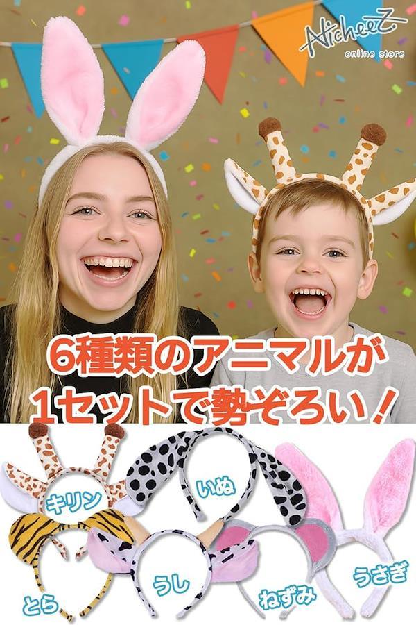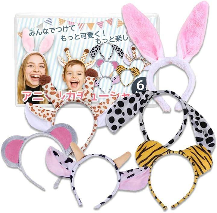 「6種類の動物カチューシャで盛り上がる」イヌ・ウサギ・ウシ・トラ・キリン・ネズミの6種類が入ったお得なヘアバンドセット。