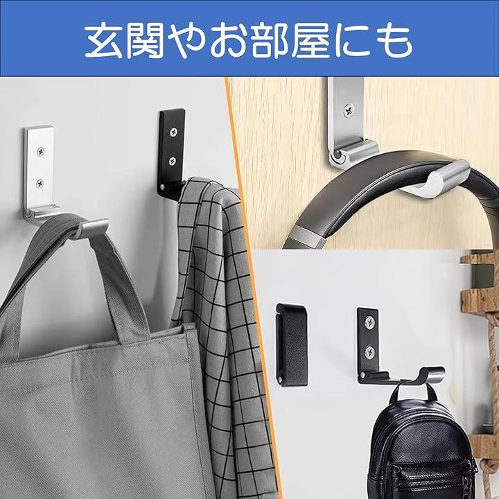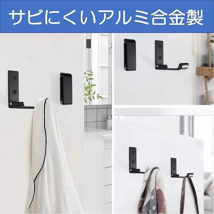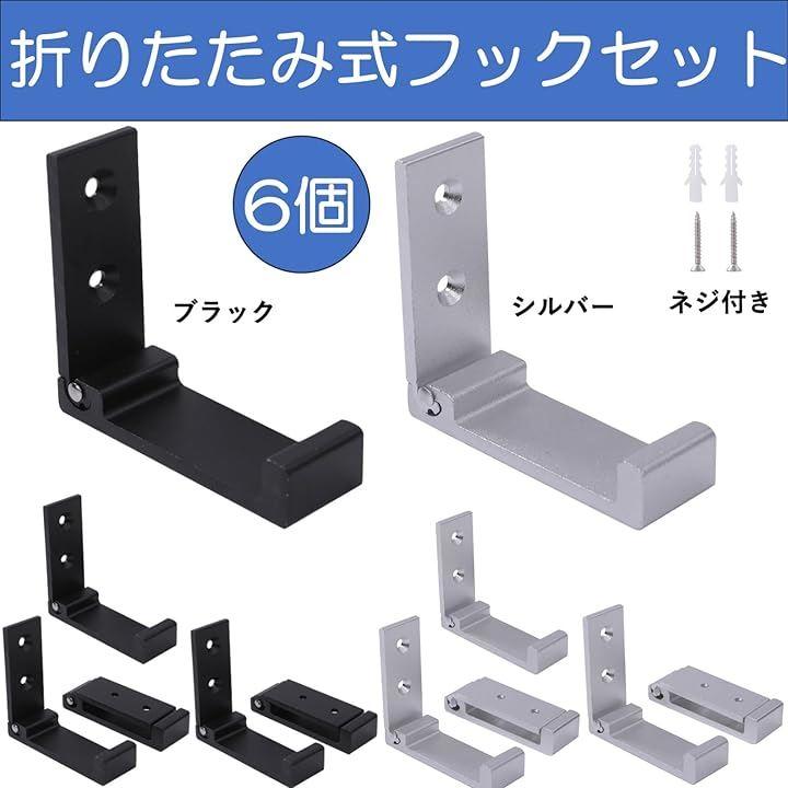 「壁掛けフック 折り畳み式 6個セット 黒 バス キッチン ガレージ用」