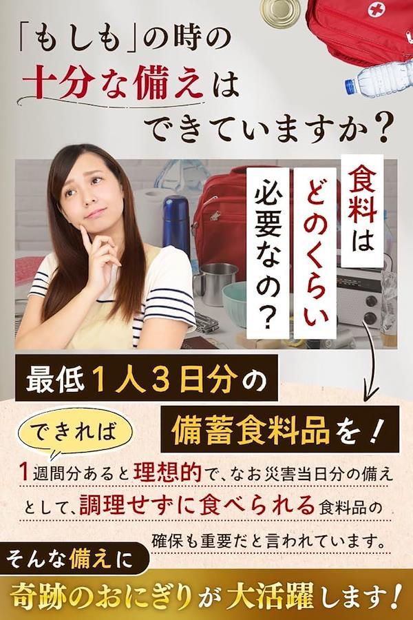 「累計30万個販売シリーズ商品」自衛隊や企業、病院など全国100以上の施設で使用実績のあるおにぎりと同じ原料が使われている備蓄おにぎりをご家庭向けにお届けします。