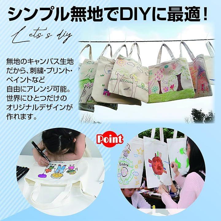 無地のキャンバス生地で、刺繍やペイント、プリントなどDIYにピッタリ。