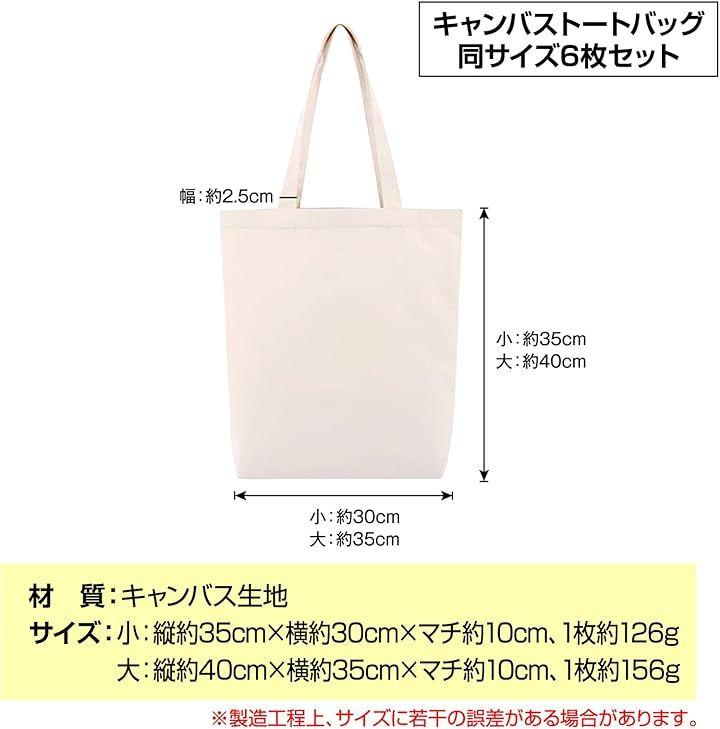 「サイズ」 大 縦約40cmx横約35cmxマチ10cm 「素材」 キャンバス生地 「商品重量」 大1枚約156g 「内容」 6個