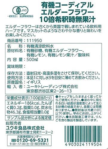 英国オーガニック食品協会および、日本のオーガニック認証協会での承認を取得した、ノンアルコールハーブドリンクです。有機JASマーク承認を取得した、何世紀にもわたるイギリスの伝統文化から生まれた、気分をリフレッシュするハーブ飲料。キャップはスクイーズ式です。エルダーフラワーは古くからイギリスの人々に親しまれているハーブです。 農場で手で摘まれた新鮮なエルダーフラワーを丁寧に抽出し、新鮮なレモン果汁と天然の湧き水で作られています。欧米では「田舎の薬棚」とも呼ばれ、民話にもよく登場します。 冷えた約10倍の水や炭酸水で割ってお召し上がり下さい。また、ワインやシャンパン、アップルジュースに加えたり、お料理の風味付けにもご使用いただけます。いただけます。1本で約4Lのハーブドリンクがお楽しみいただけます。