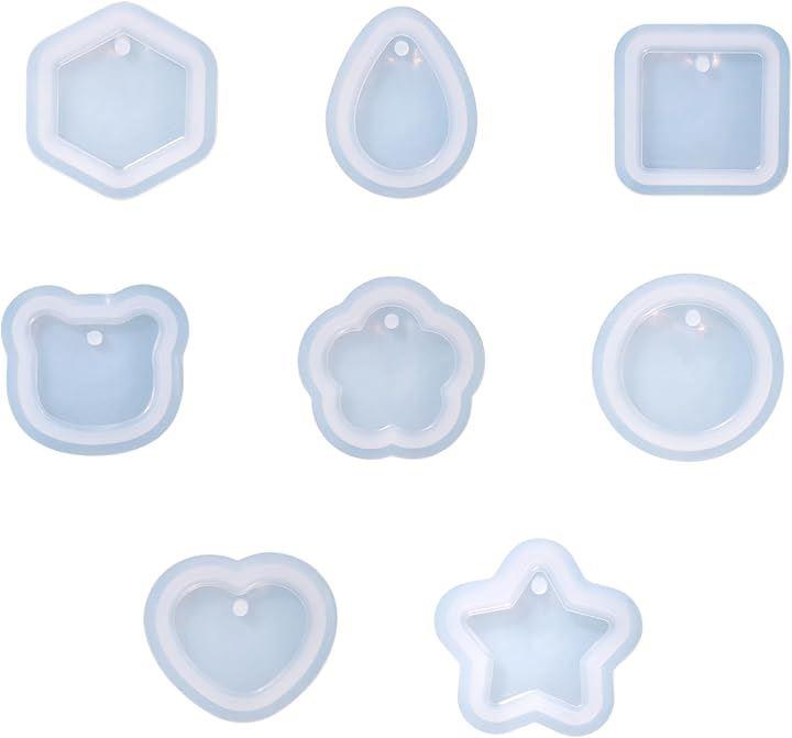 ハート・ほし・水滴・花・くま・丸・六角形・正方形――人気のモチーフを集めた、8種セットのシリコンモールドです。