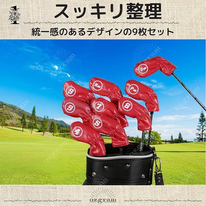 「9枚セットでフルカバー」 4番~9番、AW、PW、SWまで揃った9枚セットで、アイアンをしっかり保護。