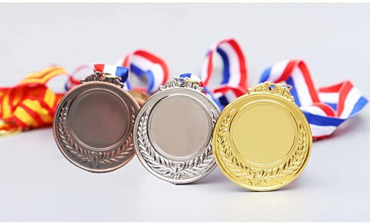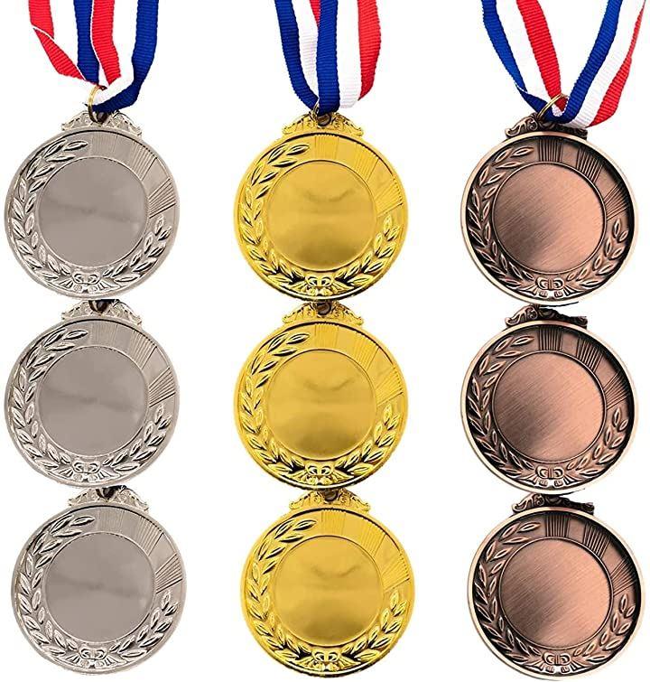 ・「セット内容」金メダルx3個 銀メダルx3個 銅メダルx3個 「サイズ」(外径)約6.5cm (内径)約4cm (ヒモの長さ)約80cm 「重さ」40g 「材質」合金