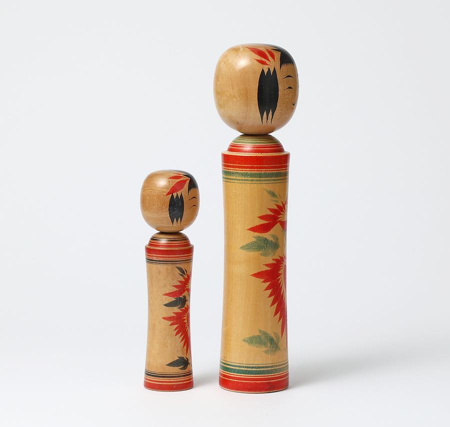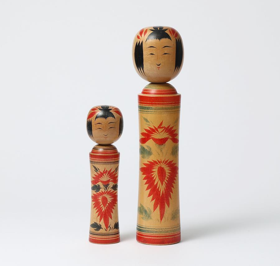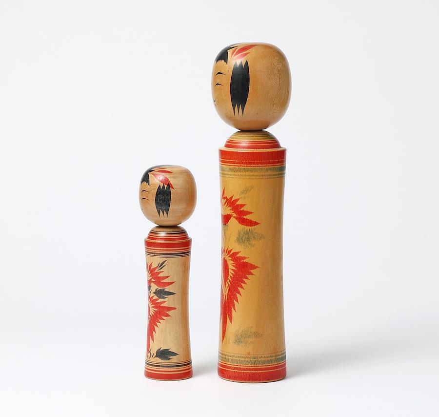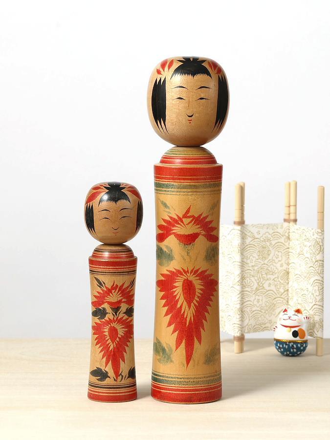 ★こけしカテゴリー:鳴子系伝統こけし★作者:伊藤 松一(いとう しょういち)★デザイン:宮城・鳴子温泉の伝統を受け継ぐ名工、伊藤松一工人(1924~2019)による二本セット。鳴子系こけしらしい端正な表情と力強い描線に、赤く鮮やかな菊花模様が映えます。大小二本が並ぶことで華やかさが一層際立ち、工人の筆致と彩色の妙を存分に楽しめる逸品です。
