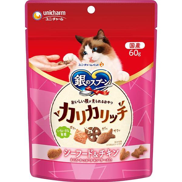 ひと粒ひと粒、楽しみながら味わえる、幸せいっぱいのカリッとおいしいおやつ猫ちゃんが大好きなまぐろ・かつお・チキン・チーズをミックス