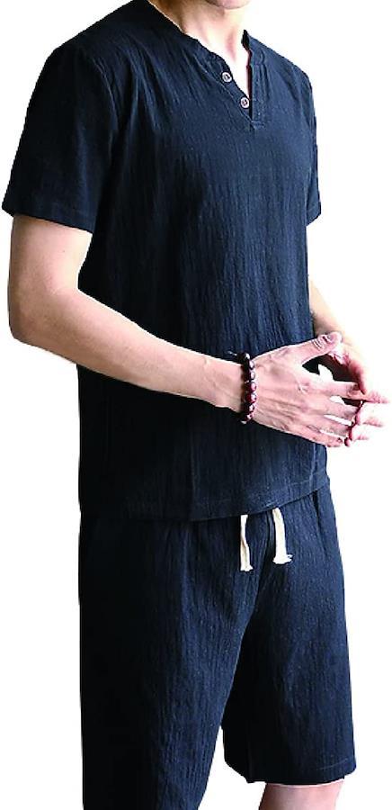 定番Vネックでお洒落に男性の定番のVネック風シャツとトレンドショートパンツのセットで、抜け感のあるデザインな。