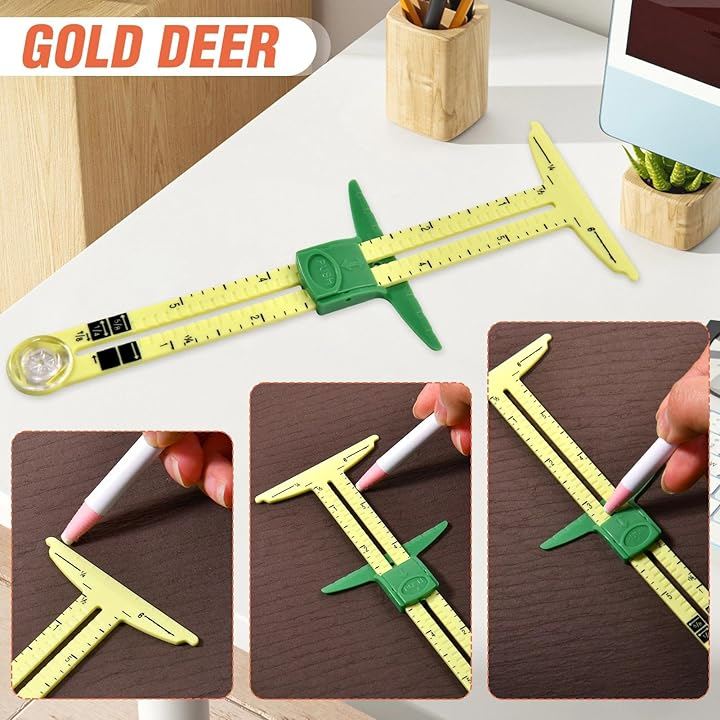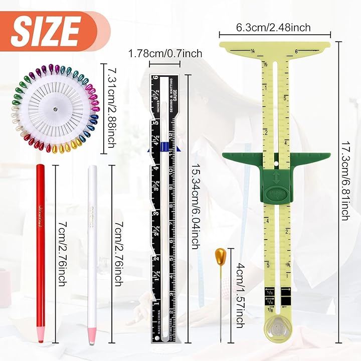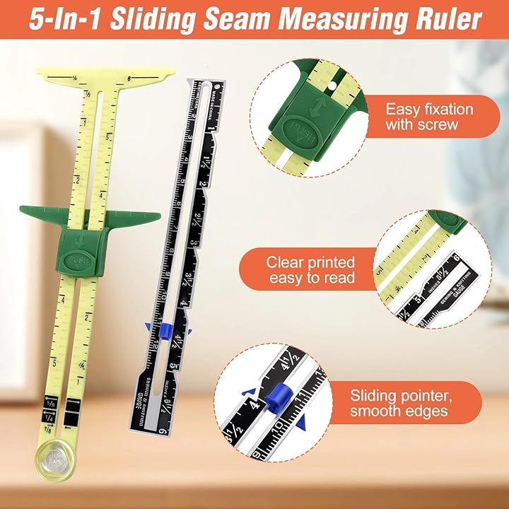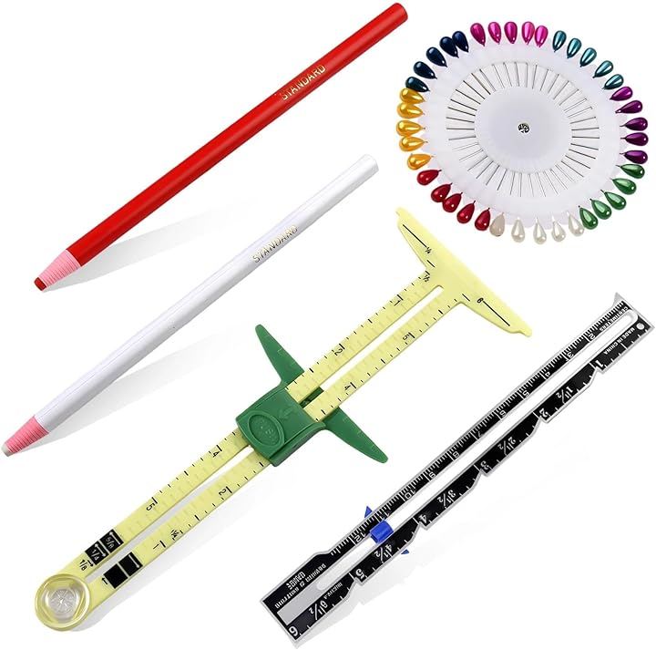 Sewing Gauge Measuring Tool Set 5-in-1 T-shaped Sliding Gauge Quilting Ruler T-shaped Measuring Tool Quilting Ruler, Needle Beads, Marking Pen Included Sewing Knitting Craft Buttonhole Marking