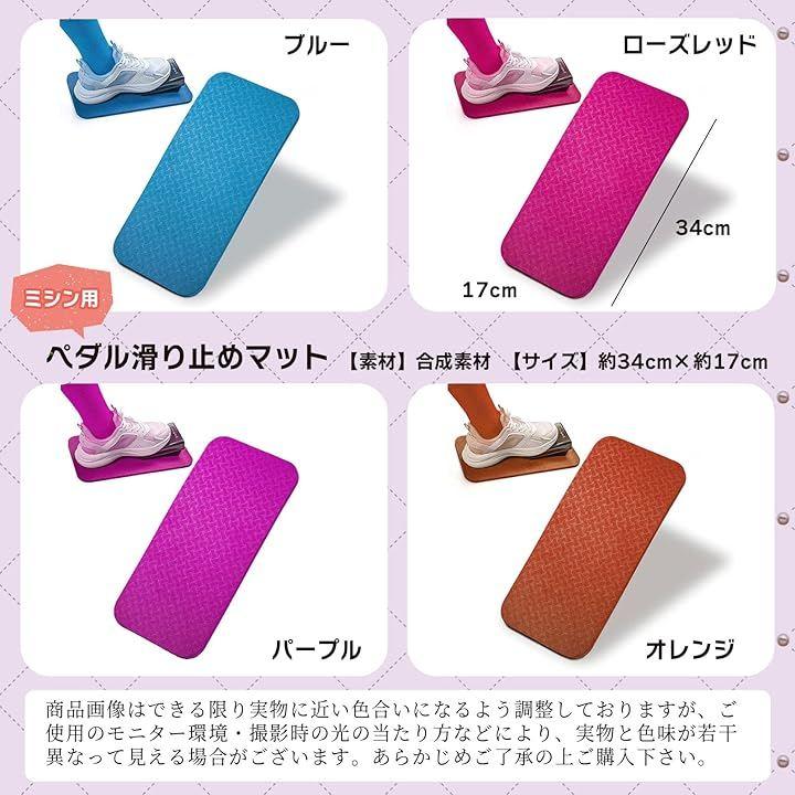 「商品内容」ミシン用 ペダル滑り止めマット「カラー」ブルー/パープル/ローズレッド/オレンジ「サイズ」約34cm x 約17cm「素材」合成素材