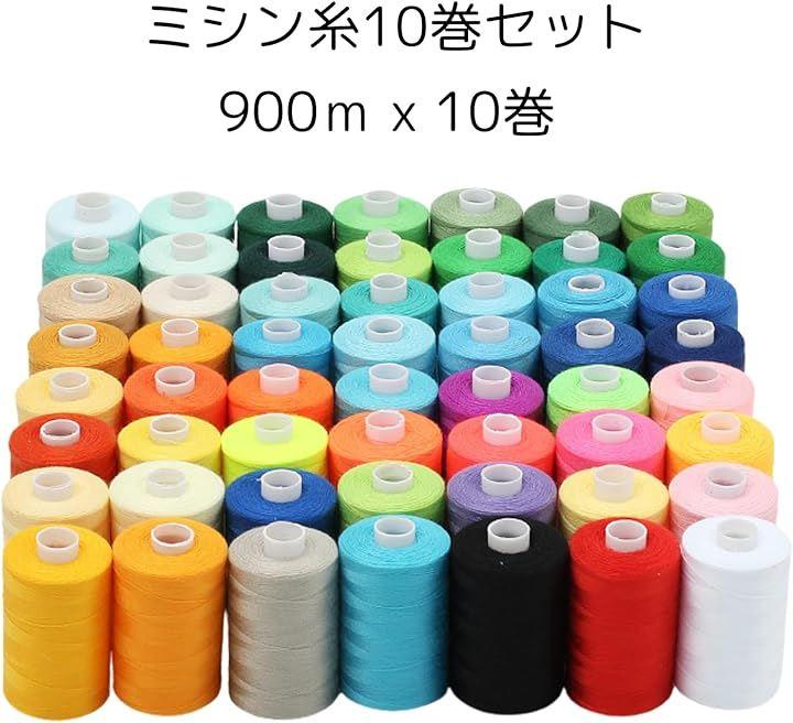 このポリエステル製の糸は、10巻セットで合計9000mもの長さがあります。