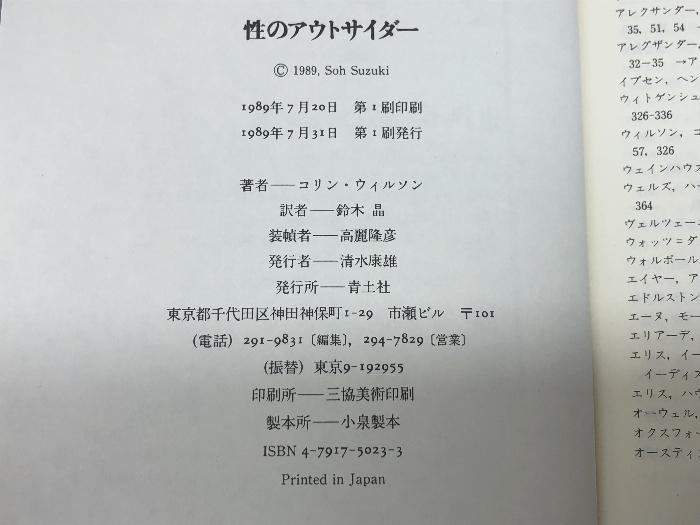 商品名:性のアウトサイダー 青土社 鈴木 晶