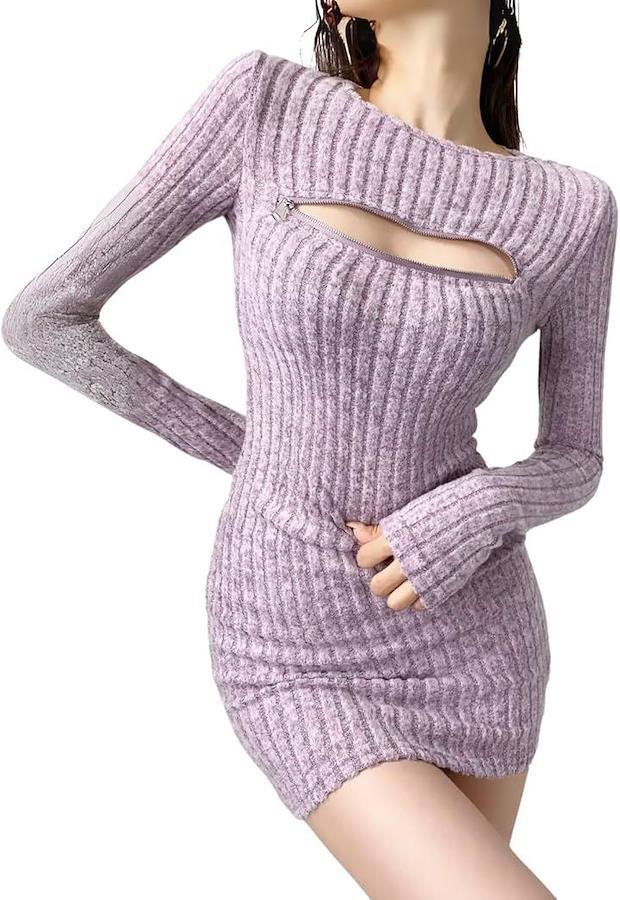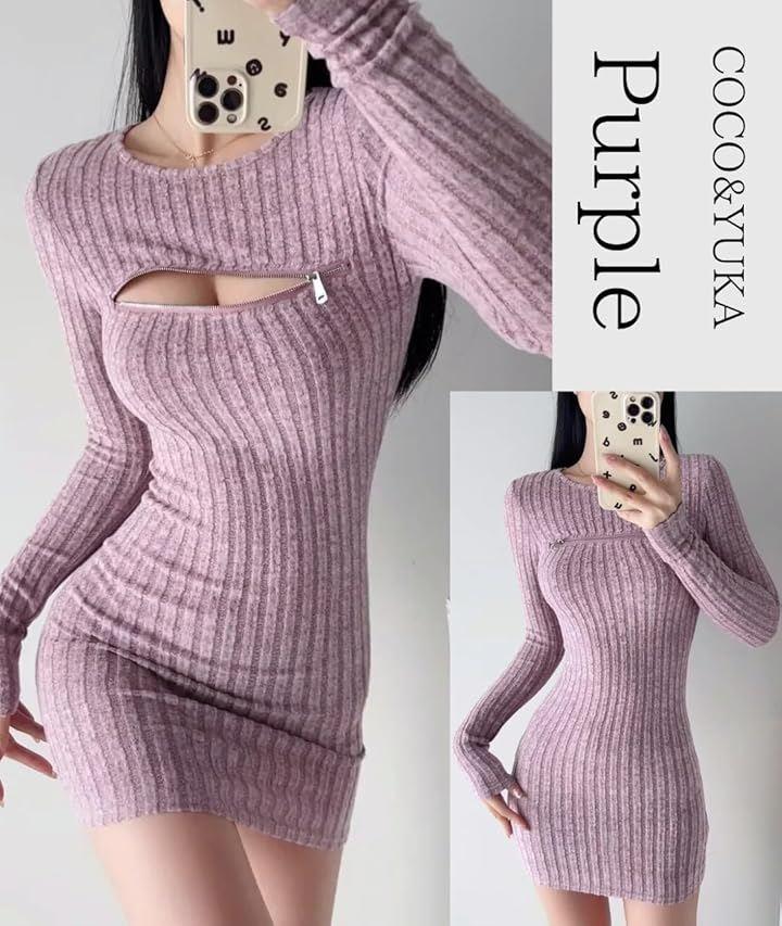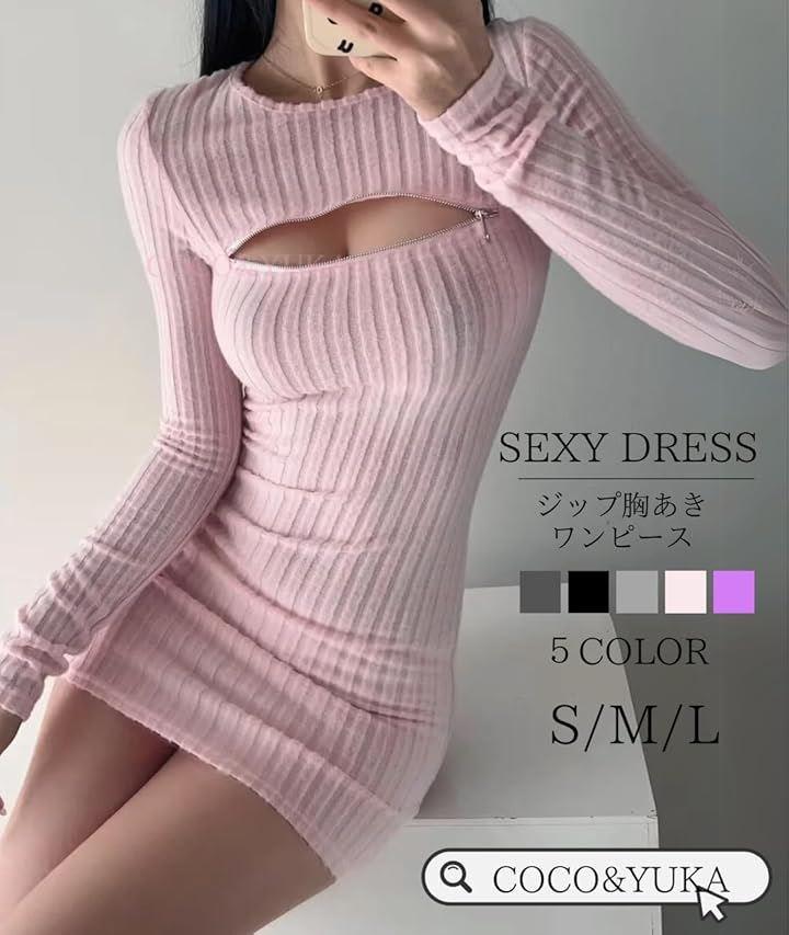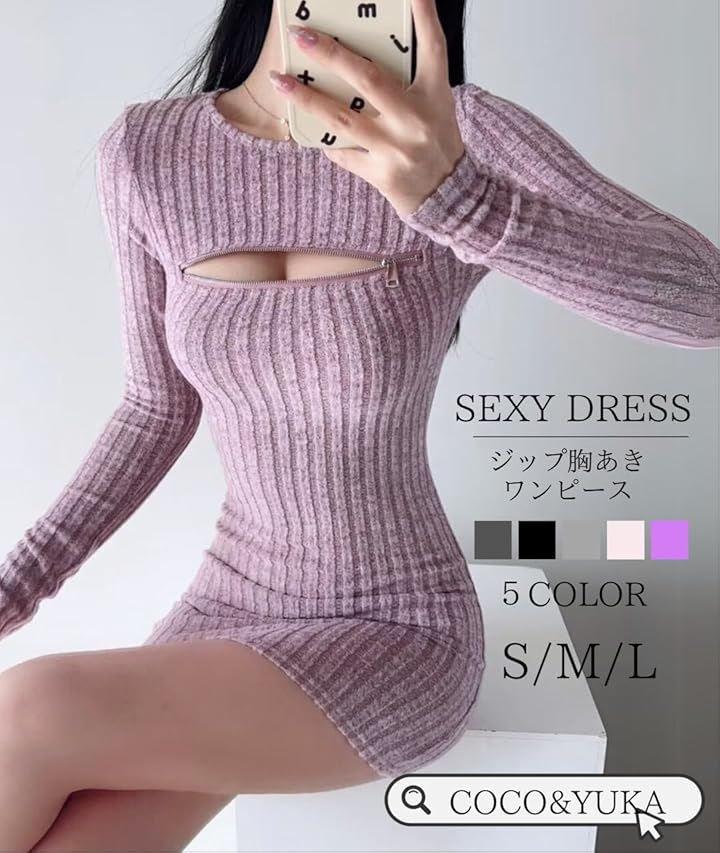 このリブニットワンピースは、女性らしさを魅せるボディコンシルエットと、胸元のジッパーデザインがアクセントになったセクシーでトレンド感溢れる一着です。