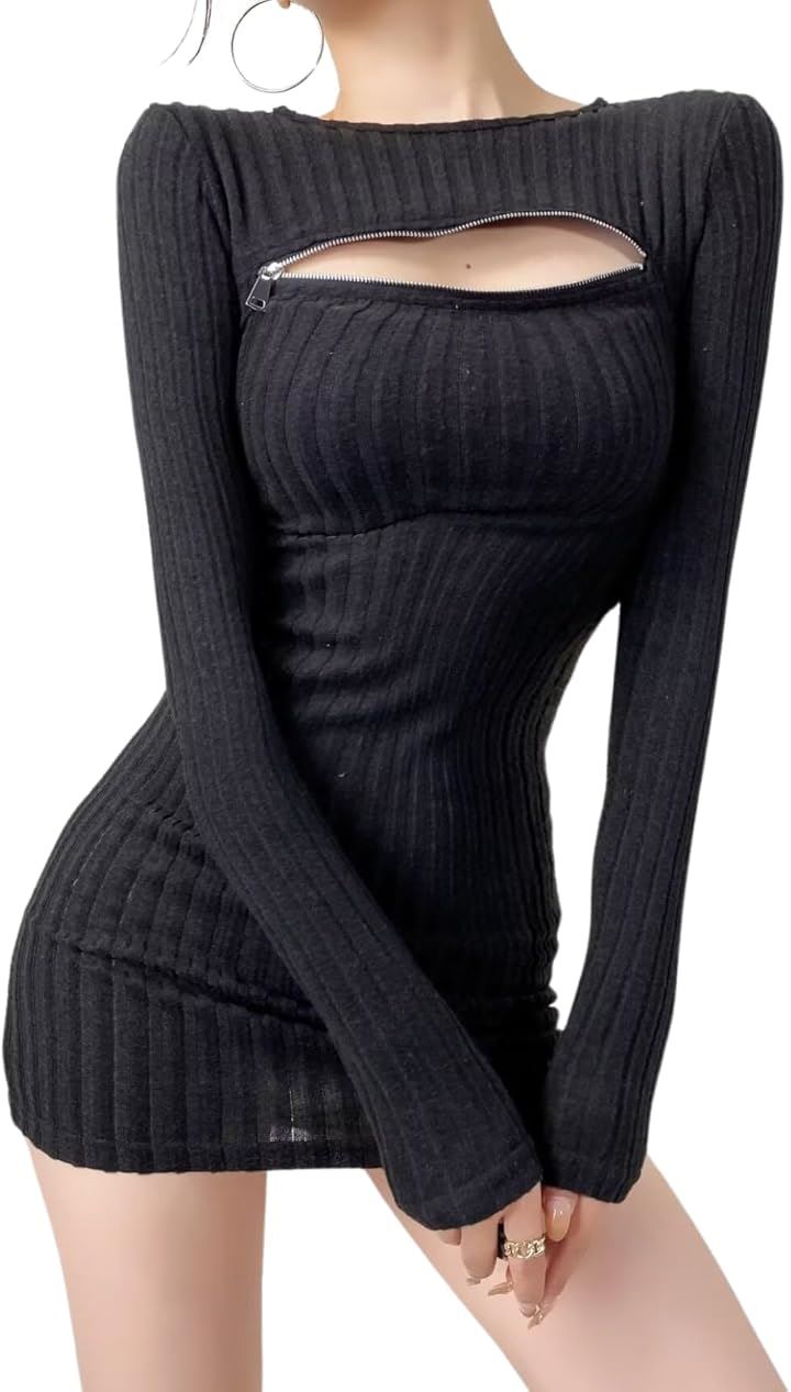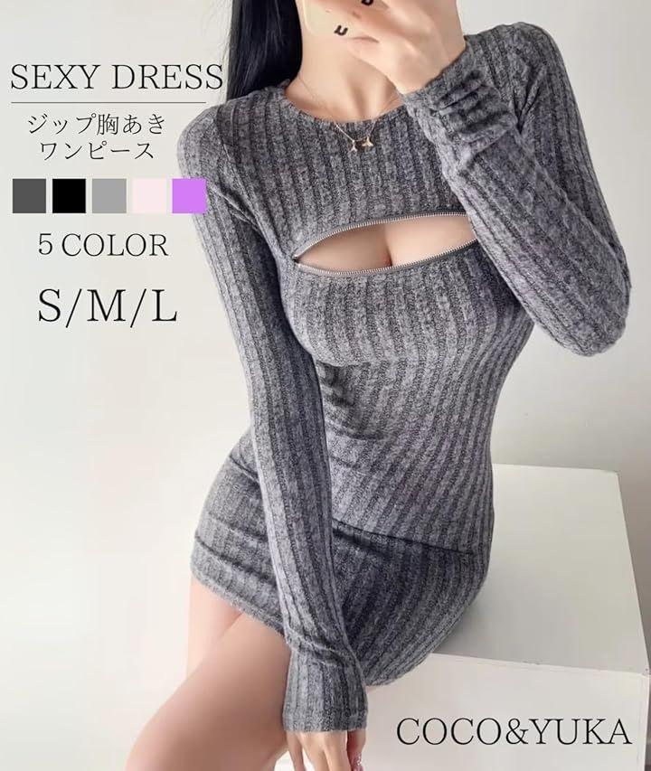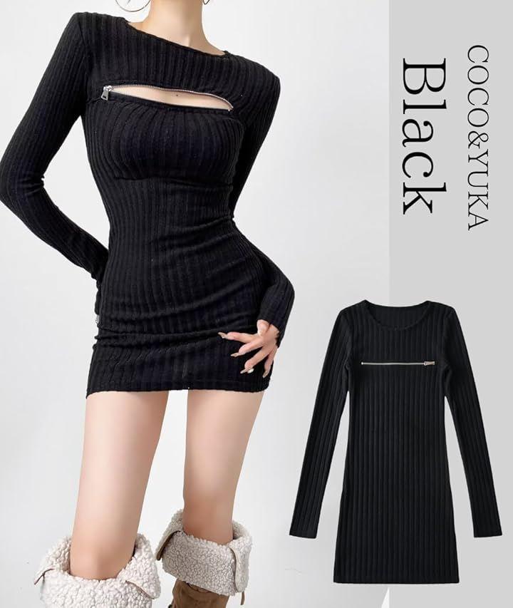 このリブニットワンピースは、女性らしさを魅せるボディコンシルエットと、胸元のジッパーデザインがアクセントになったセクシーでトレンド感溢れる一着です。